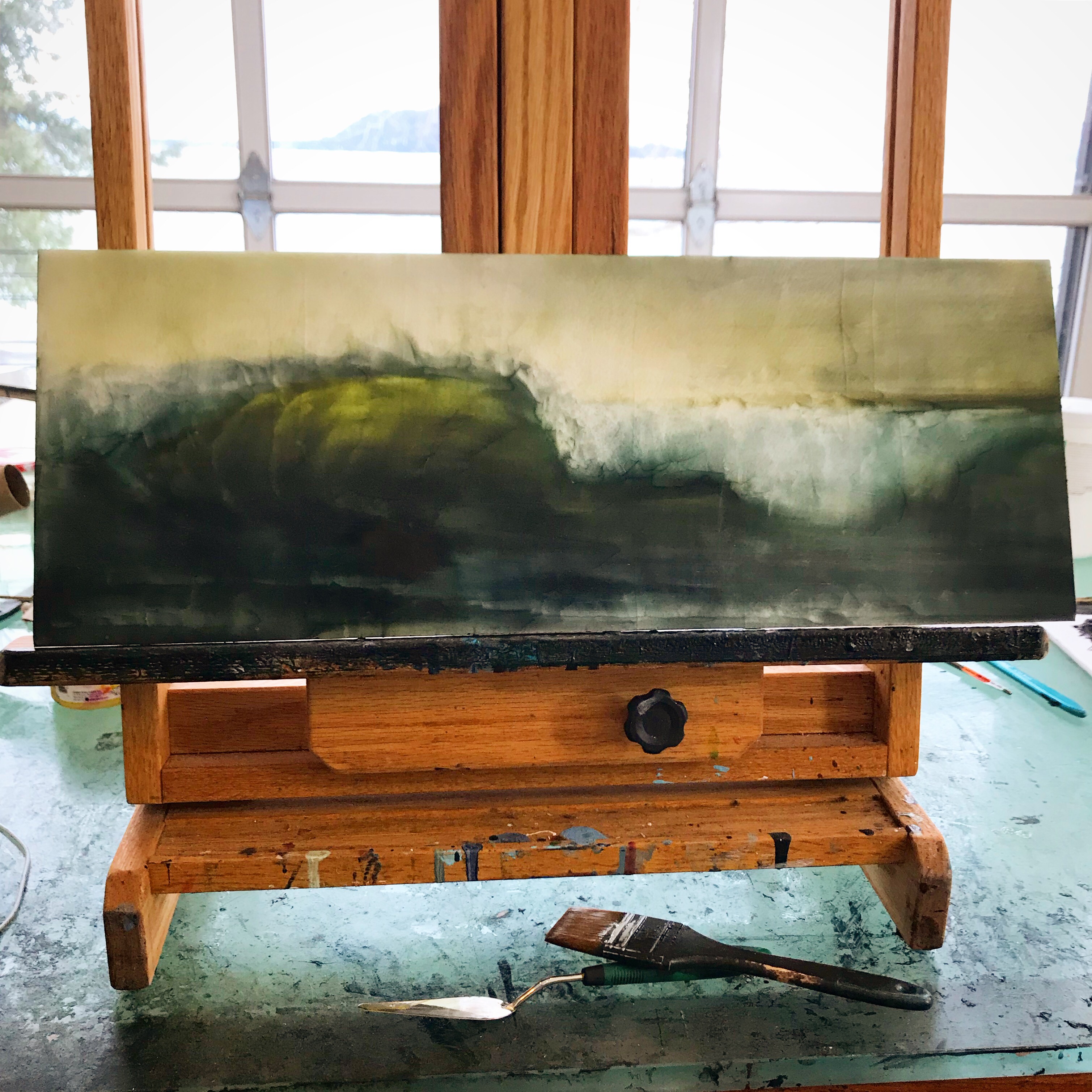 I have some 12” in the studio so I took myself way off course and played around with some water imagery. It’s good to break things up from time to time.