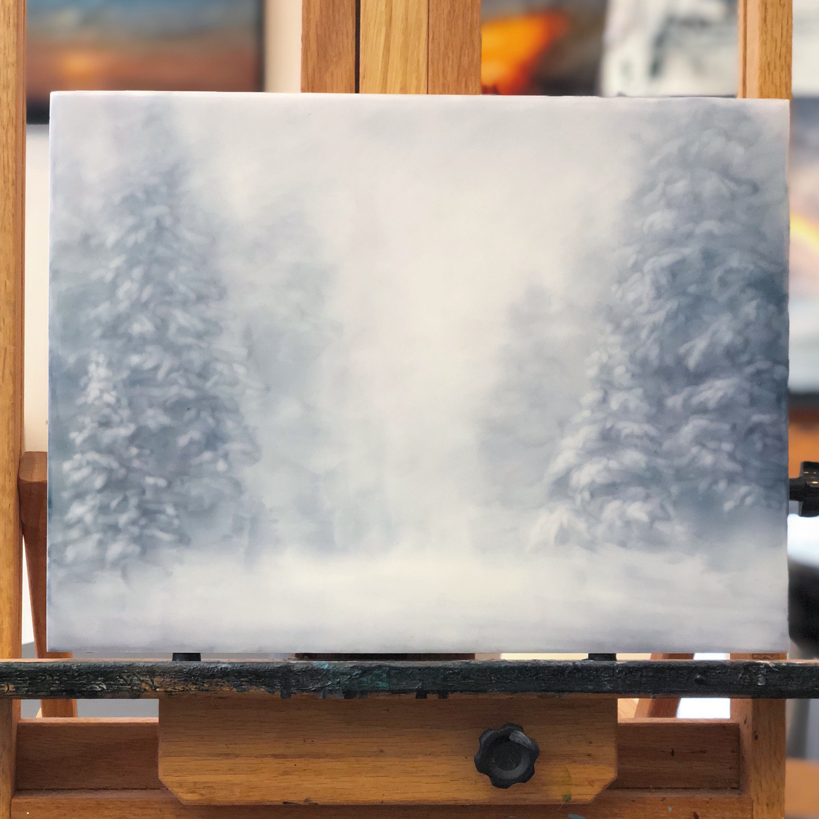 The last two weeks we saw the final gasps of winter. It seems appropriate that I have just sold this cold landscape painting as a farewell. The creation of this one is detailed on my YouTube channel.
